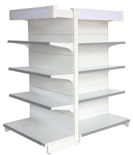A gondola shleving is a freestanding fixture used by retailers to display merchandise. Gondolas shleving typically consist of a flat base and a vertical component featuring notches, pegboards, or slat walls. The vertical piece can be fitted with shelves, hooks, or other displays.